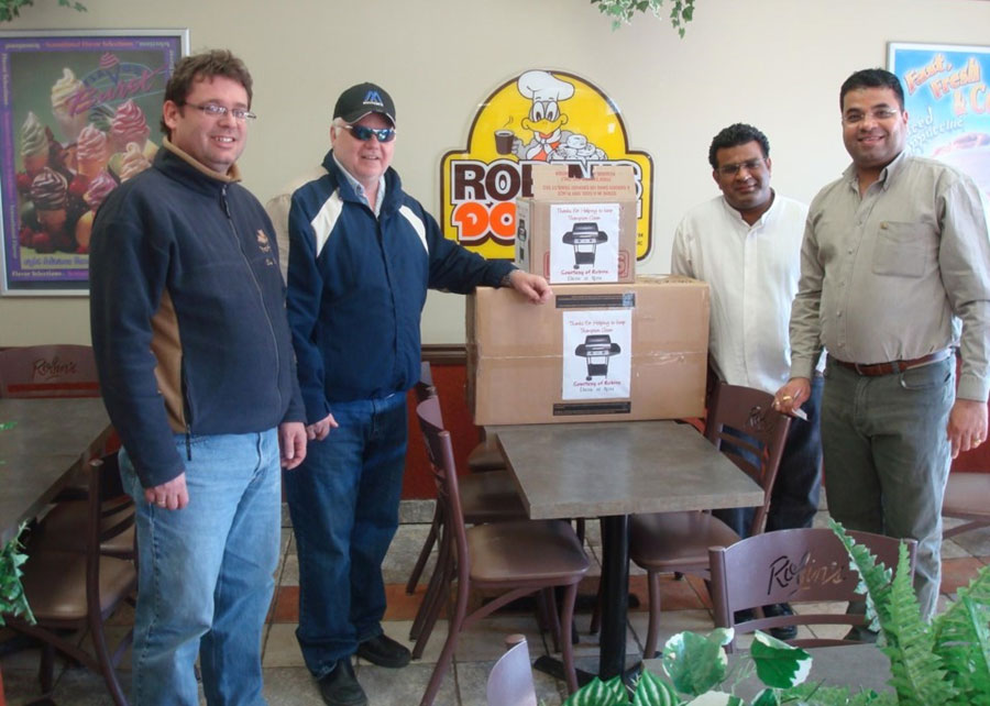 Mayor Tim Johnston, left, 2009 spring clean-up barbecue winner Laurie Schiltroth, former city councillor Oswald...